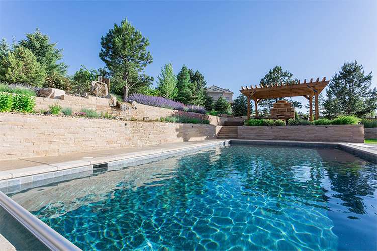 We had the opportunity to go all in on our latest outdoor living project. This project featured a central swimming pool and a cozy pergola with a paver patio and outdoor fireplace. Next to the pool is a serene boulder water feature and a sunken hot tub. Surrounding our project is buff stone walls and an amazing view. We loved working on this project and we are excited at how well this project turned out.