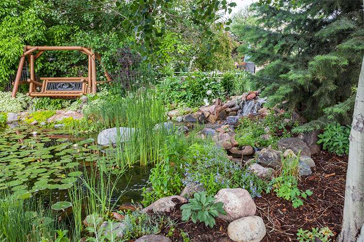 The proud owner of this pond starts each morning swinging and meditating next to this jewel.