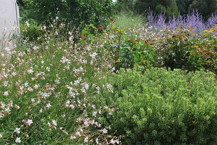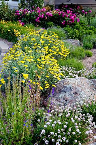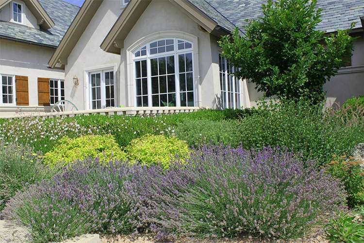 We had the chance to help some old wonderful clients rework the front of their newly purchased house. We tore out quite a bit of old boxwoods, roses, etc. We added many many perennials, grasses, and small shrubs. We featured low water but colorful plants. The effect has been beautiful pictured here as before, 1st year and now in it’s third season. The owners love it and enjoy the changes and the many effective evergreen perennials.